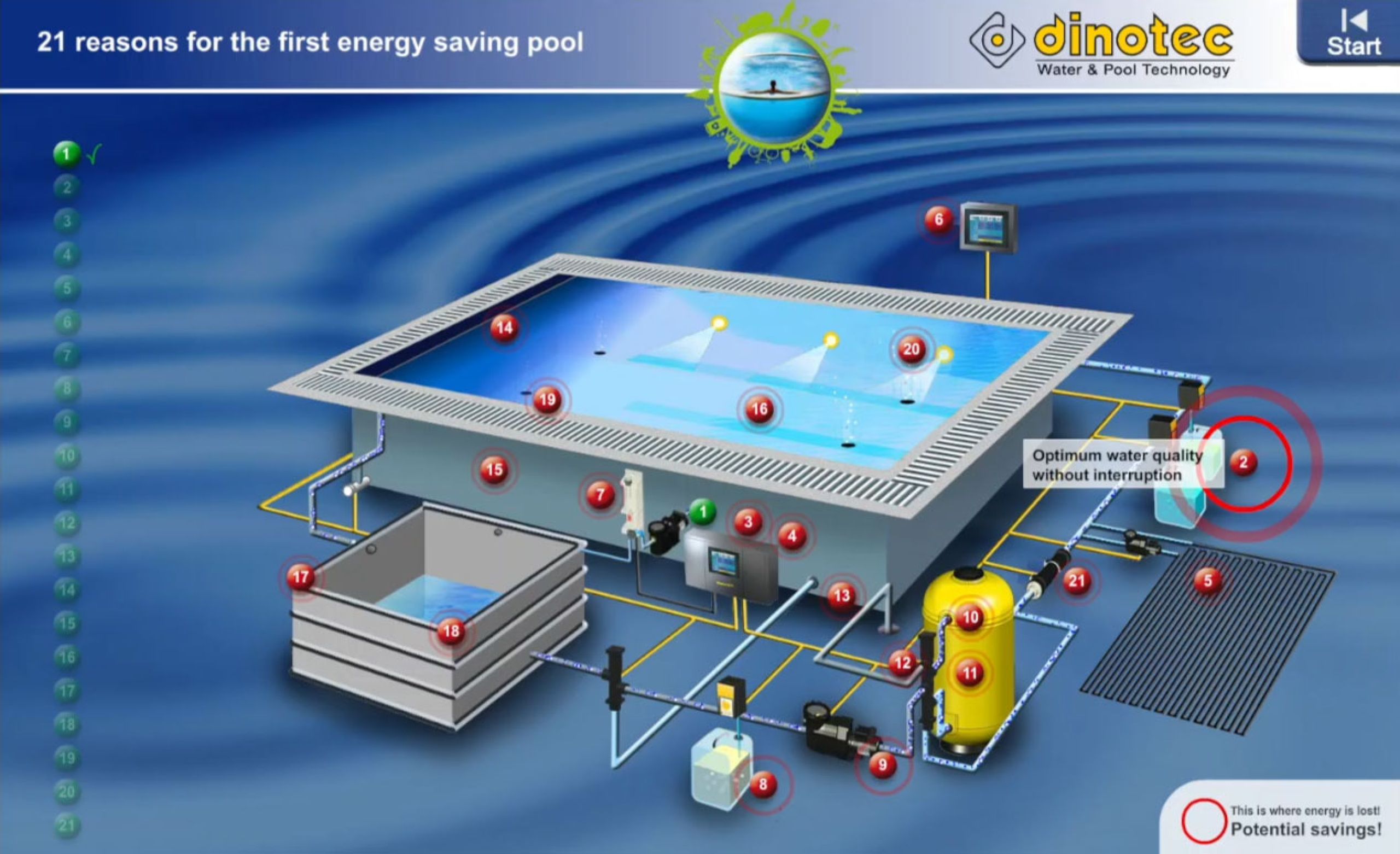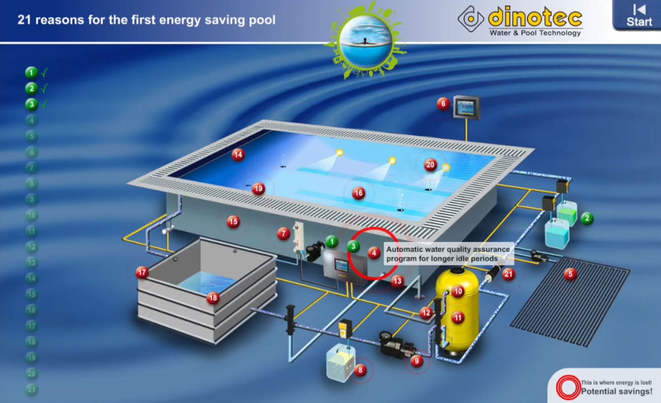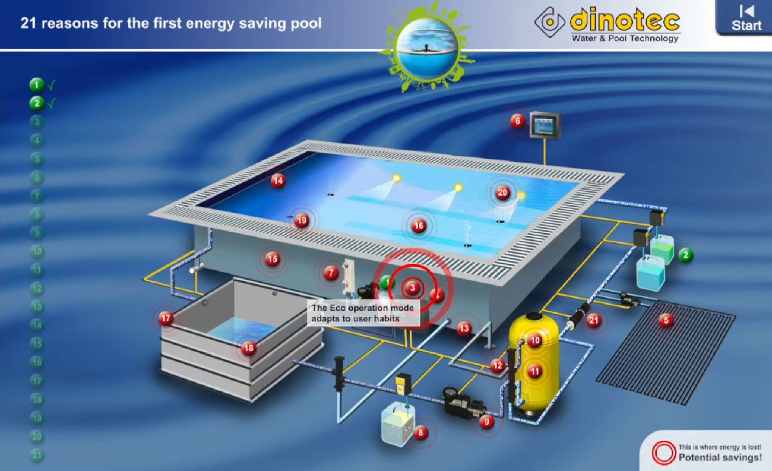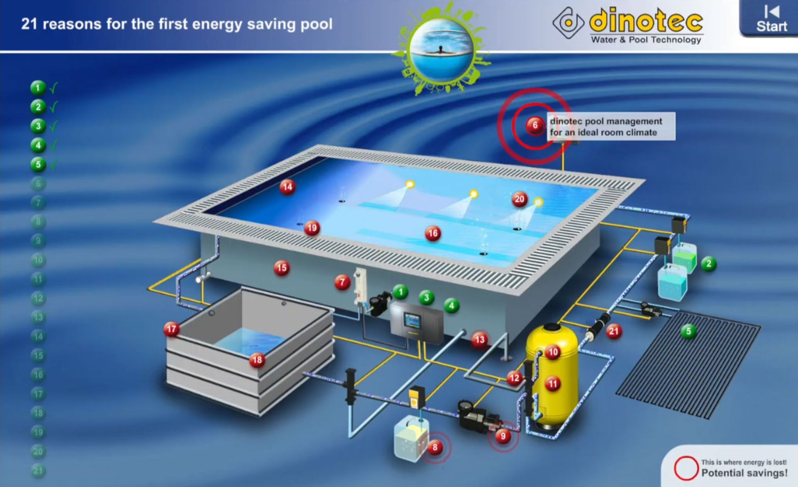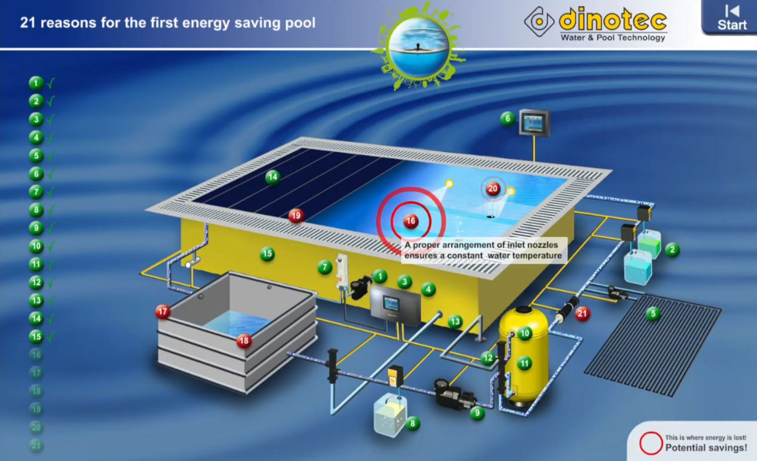 Bei herkömmlichen Pools geht eine Menge Energie verloren. Wir zeigen Ihnen, wie Sie an 21 Punkten sehr viel Energie, Wasser und Wasserpflegemittel einsparen und so zu Ihrem ersten Niedrig-Energie-Pool gelangen.