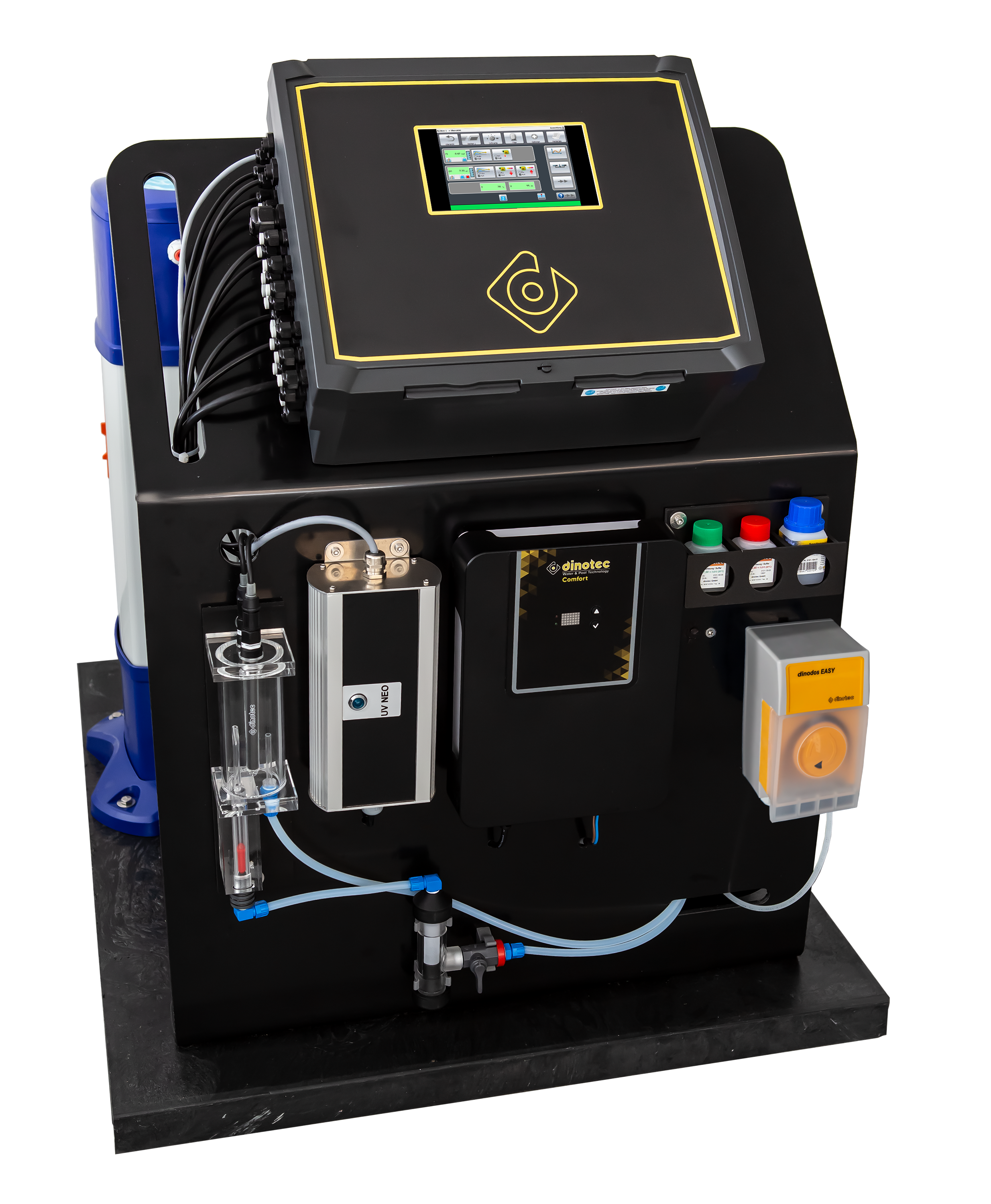 Aus diesem Grund ist die Wasseraufbereitungs-Technik von zentraler Bedeutung. Beim Niedrig-Energie-Pool wird sie von der smarten Steuerung dinotecNET+ gelenkt. dinotecNET+ stellt vollautomatisch beste Wasserqualität bei optimalem Ressourcenverbrauch her und reagiert selbstständig auf Belastungsspitzen und Abwesenheitszeiten.